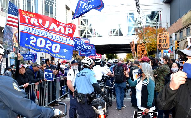 大統領選の開票作業が続く米ペンシルベニア州フィラデルフィアで、警官隊を挟んでにらみ合うトランプ大統領の支持者(左)と、バイデン氏の支持者ら=2020年11月6日なお、12月8日までに決まった各州の選挙人は、14日に各州都において大統領選出のための選挙人投票を行い、その結果は1月6日に連邦議会において、開封、確認される。もし、その結果が、どの候補も過半数(270)を獲得できない場合(候補者が2名の場合には、実際には生じにくい)には、下院が大統領を選出することは周知の事実である。
